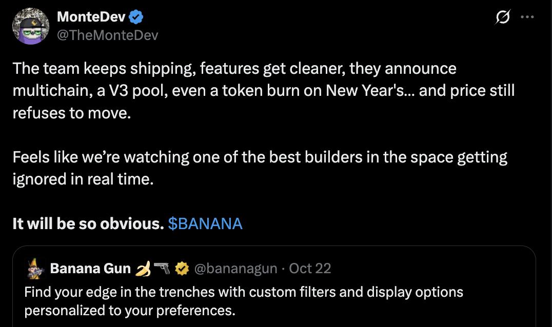 ⚙️ Big builds brewing: BananaPro data revamp, Trenches V3, Wallet V2 in motion.
