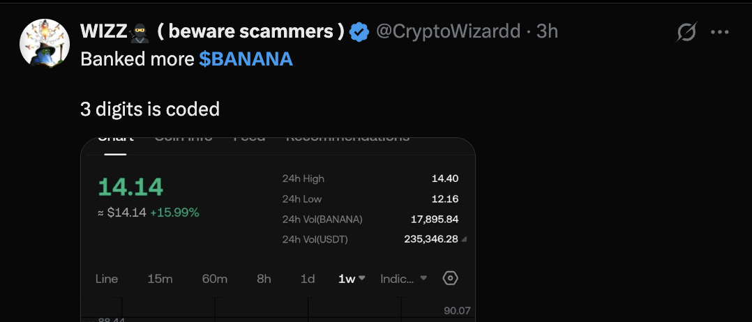 Still, the banana monkeys on SOL keep the charts interesting. 🐒