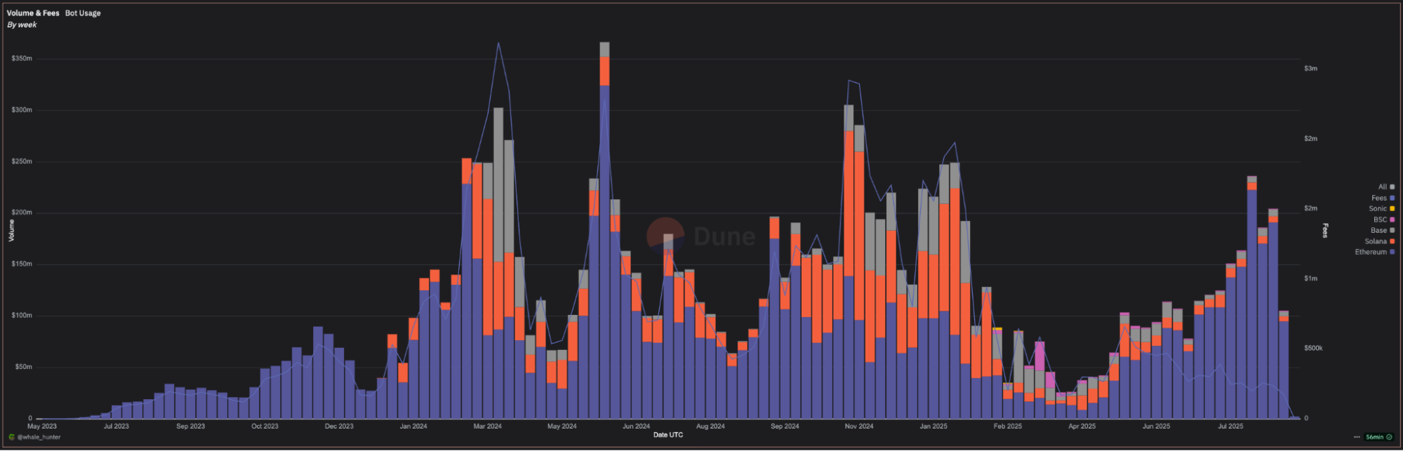 📊 $105M in bot volume, down from $197M, mostly from ETH cooling