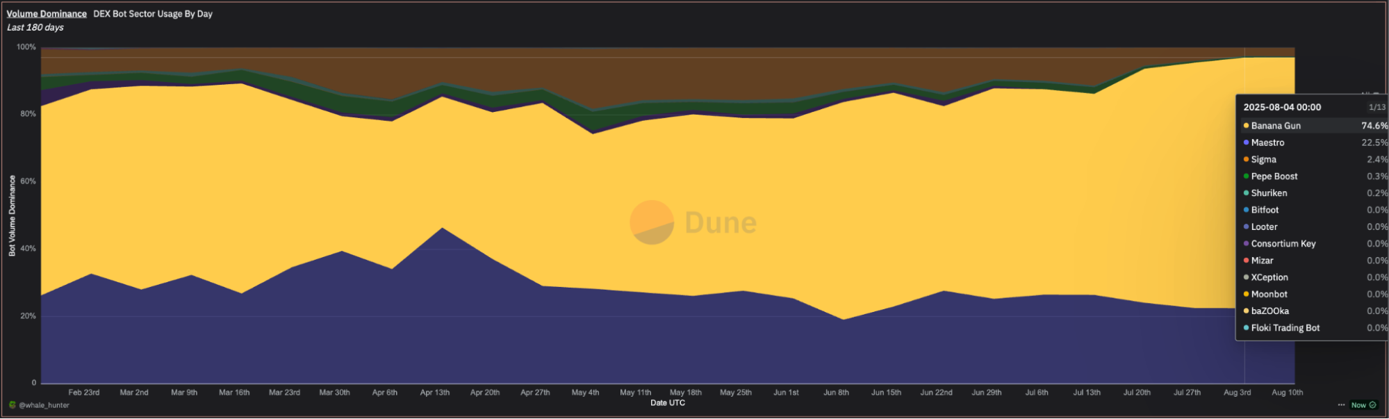 From August 4th to August 10th, Banana Gun clocked $236.2M in total volume, the biggest week since January and an absolutely massive leap from last week’s $163.7M and the $151.1M before that.
