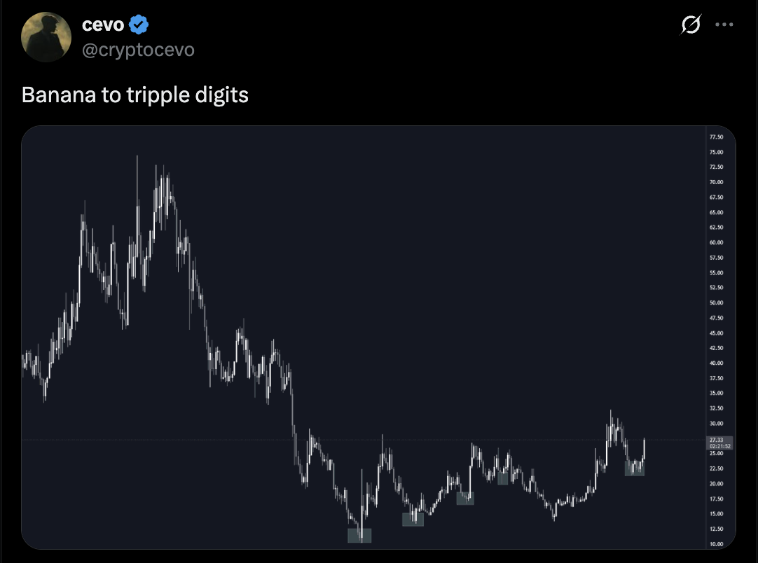 🍌 @cryptocevo is back on the board, this time keeping it short and sweet: Banana to triple digits. Nothing else, just destiny.
