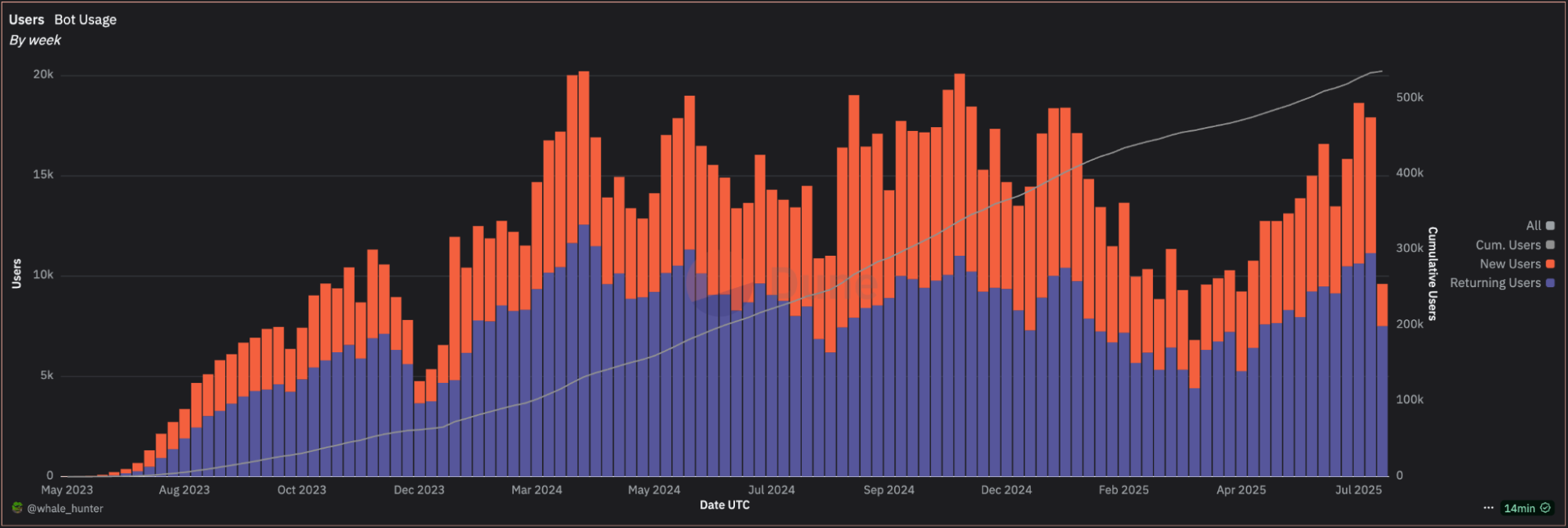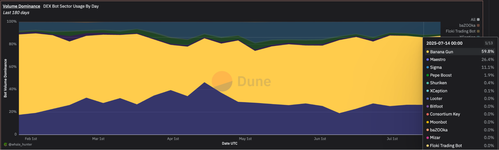 🍌 $124.5M in bot volume: new summer high, green candles keep printing